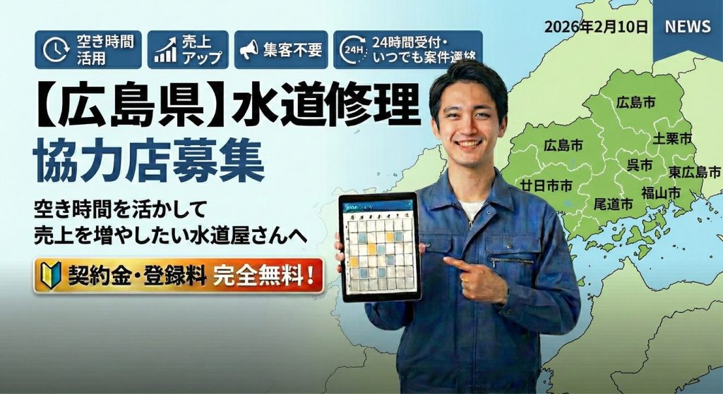 広島県内で水道修理・水回り工事を行っている事業者様へ。