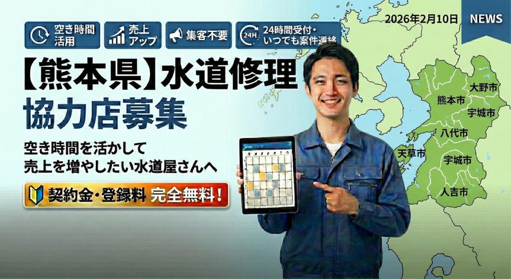 熊本県内で水道修理・水回り工事を行っている事業者様へ。