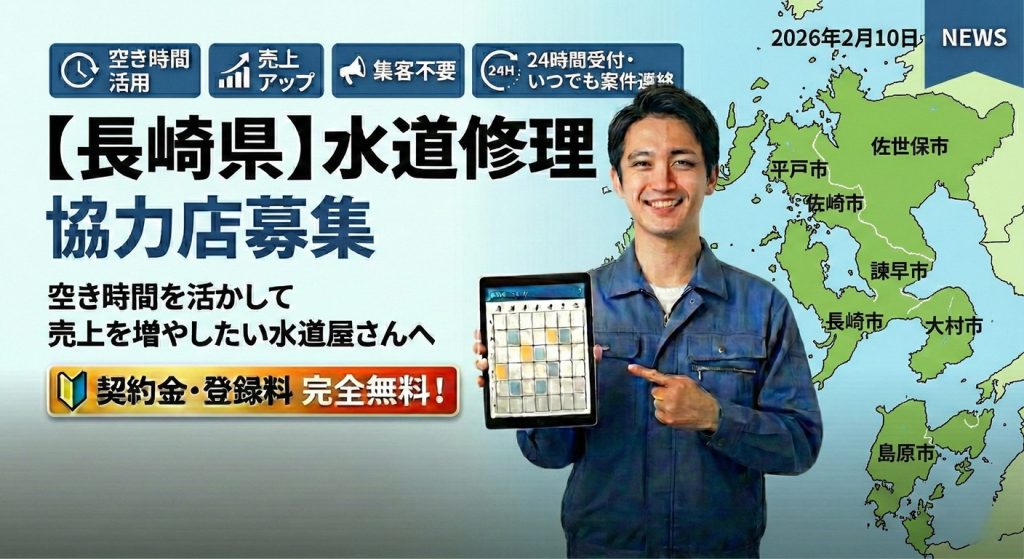 長崎県内で水道修理・水回り工事を行っている事業者様へ。